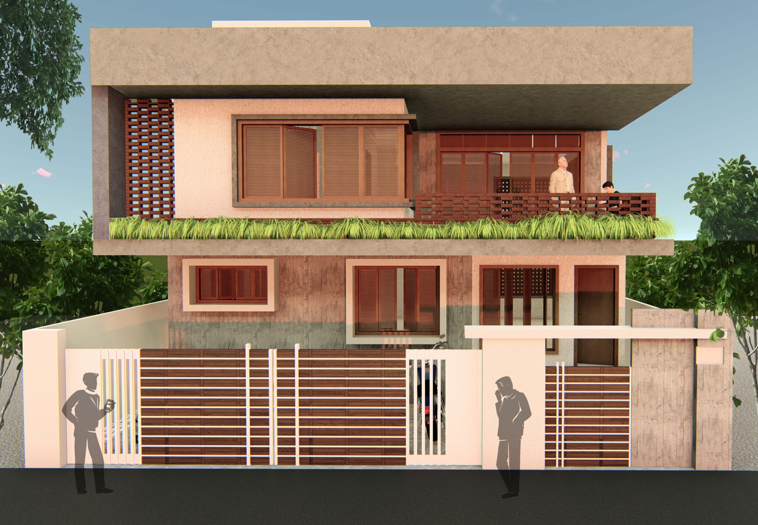 Front side of the East facing studio is emphasized by the Courtyard. Courtyard has a constant shadow all along the day as this courtyard is open to East and the North directions.