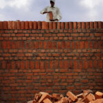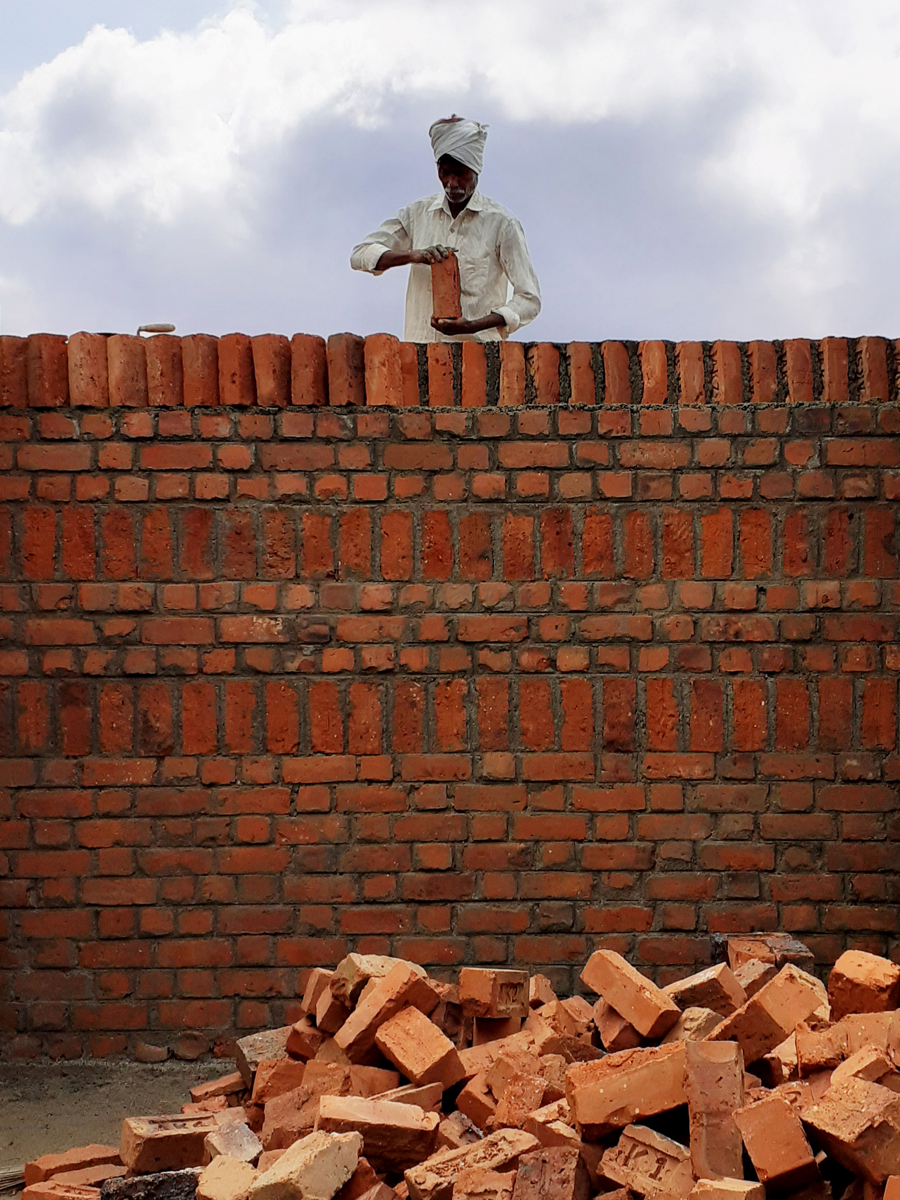 Art/architectural studio made with locally available natural material. Studio walls are made with various bonds of exposed clay brickwork.