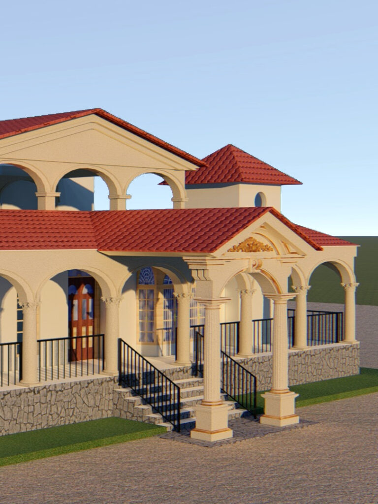 Arches have been thoughtfully incorporated to create a fusion of traditional and modern aesthetics. Greenery is an integral part of the design, with planters placed throughout the house to maintain a strong connection with nature.